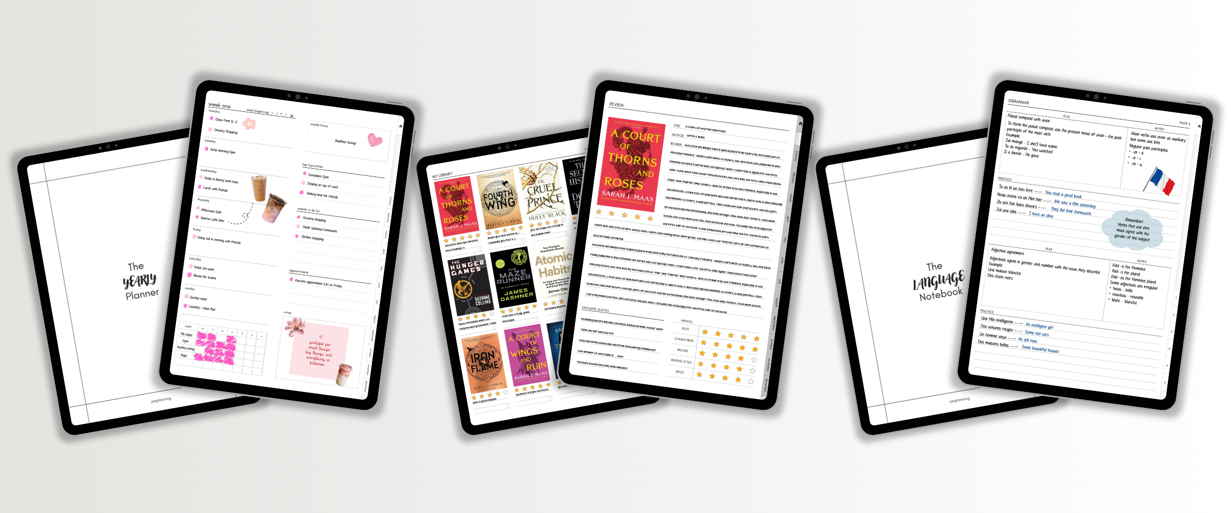 Designed for book lovers who want to stay organised, track their reads and romanticise their reading routine. Featuring undated monthly calendars, reading trackers and review pages, this planner helps you stay consistent whilst capturing every chapter of your reading journey