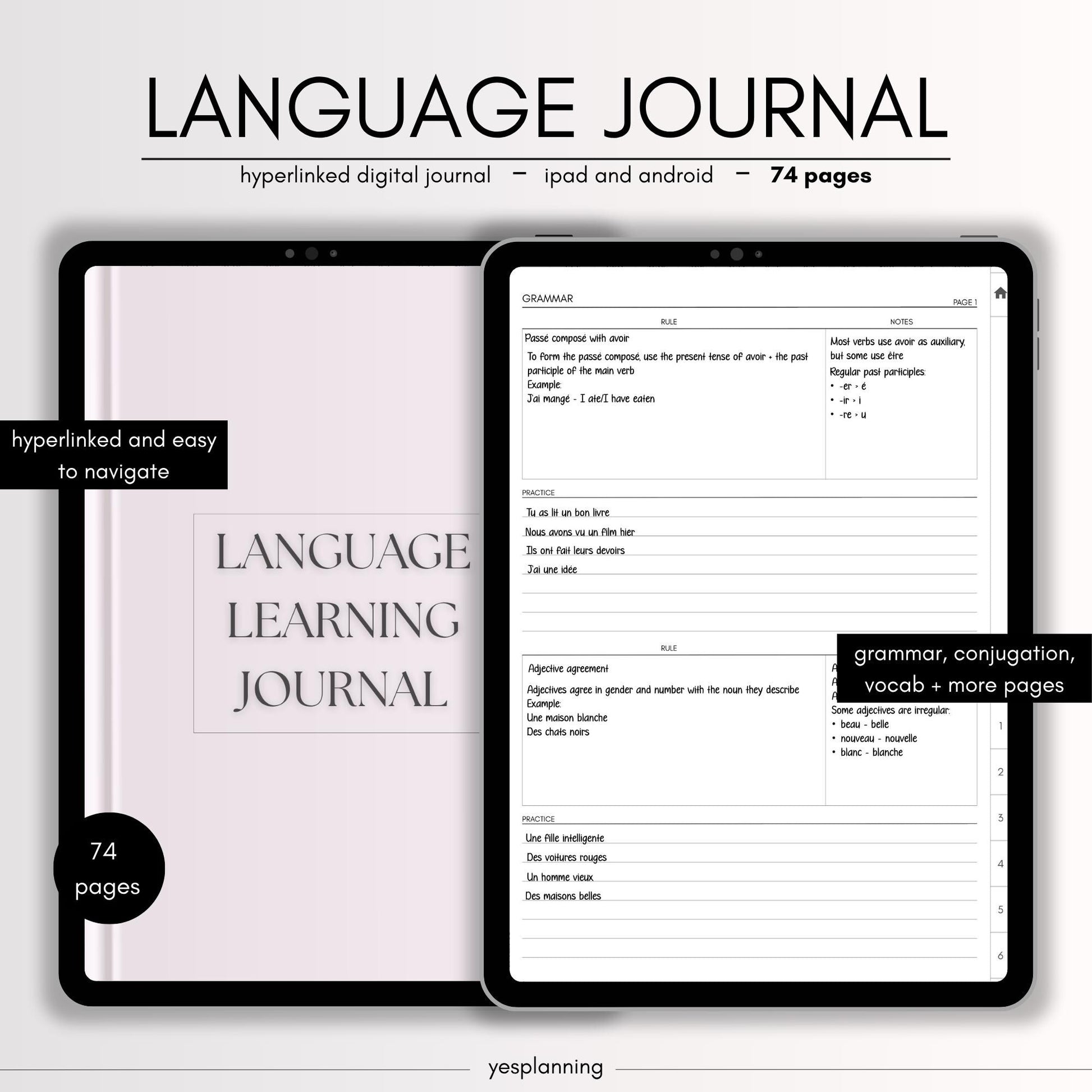 Digital Language Learning Journal: GoodNotes Compatible (PDF Downloadable Planner)